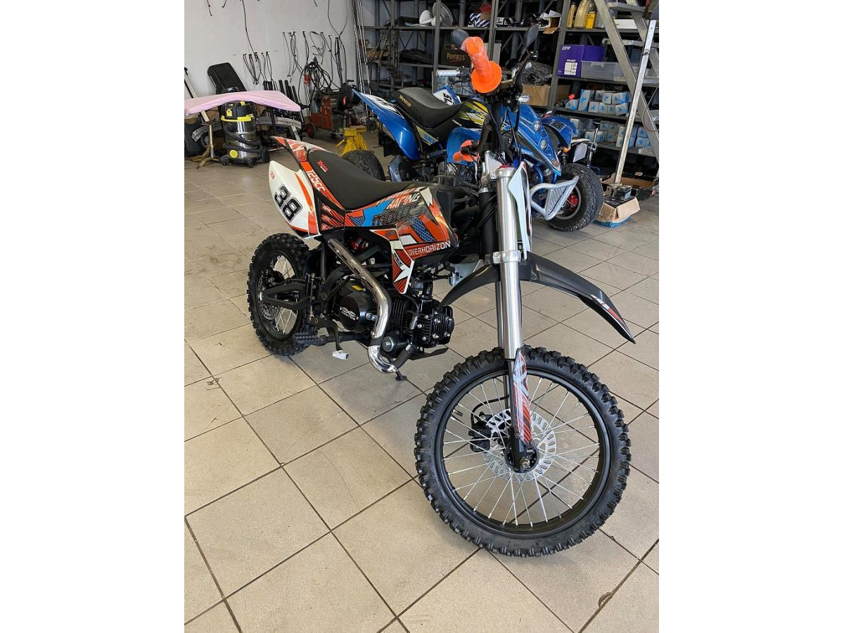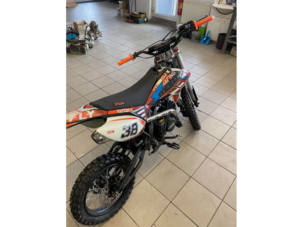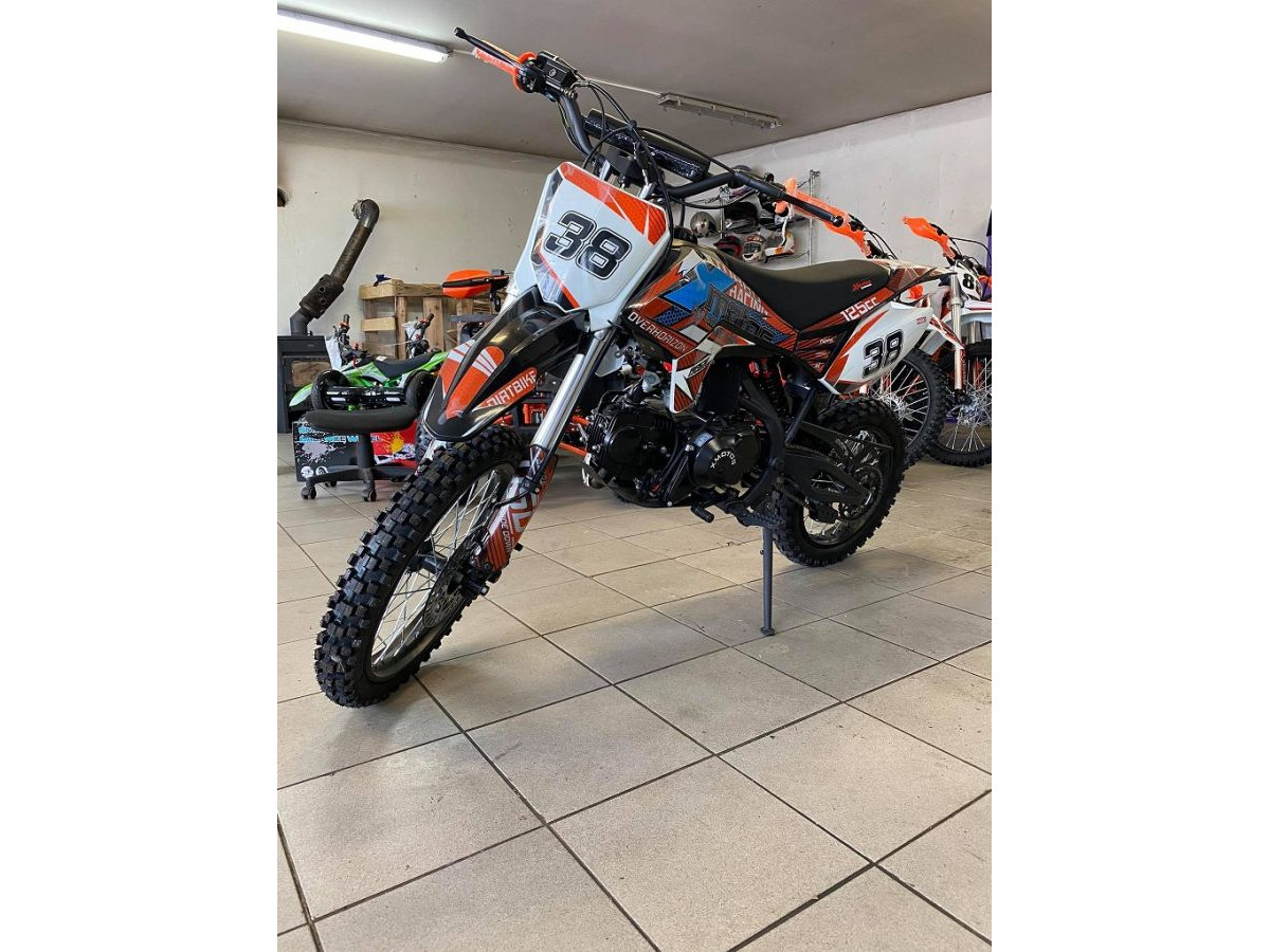 Motocykl XMOTOS - XB38 125cc 4t 17/14 má výkon 8kW, sportovní výfuk, přední i zadní hydraulické kotoučové brzdy (zadní-nožní), masivní přední Up-side-down tlumiče, zadní odpružení s nastavitelnou tuhostí, přední kolo 17 palců, zadní kolo 14 palců.